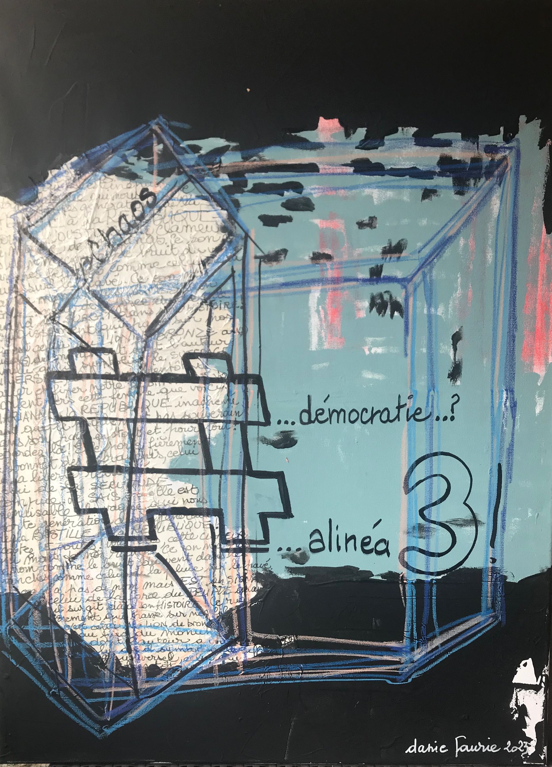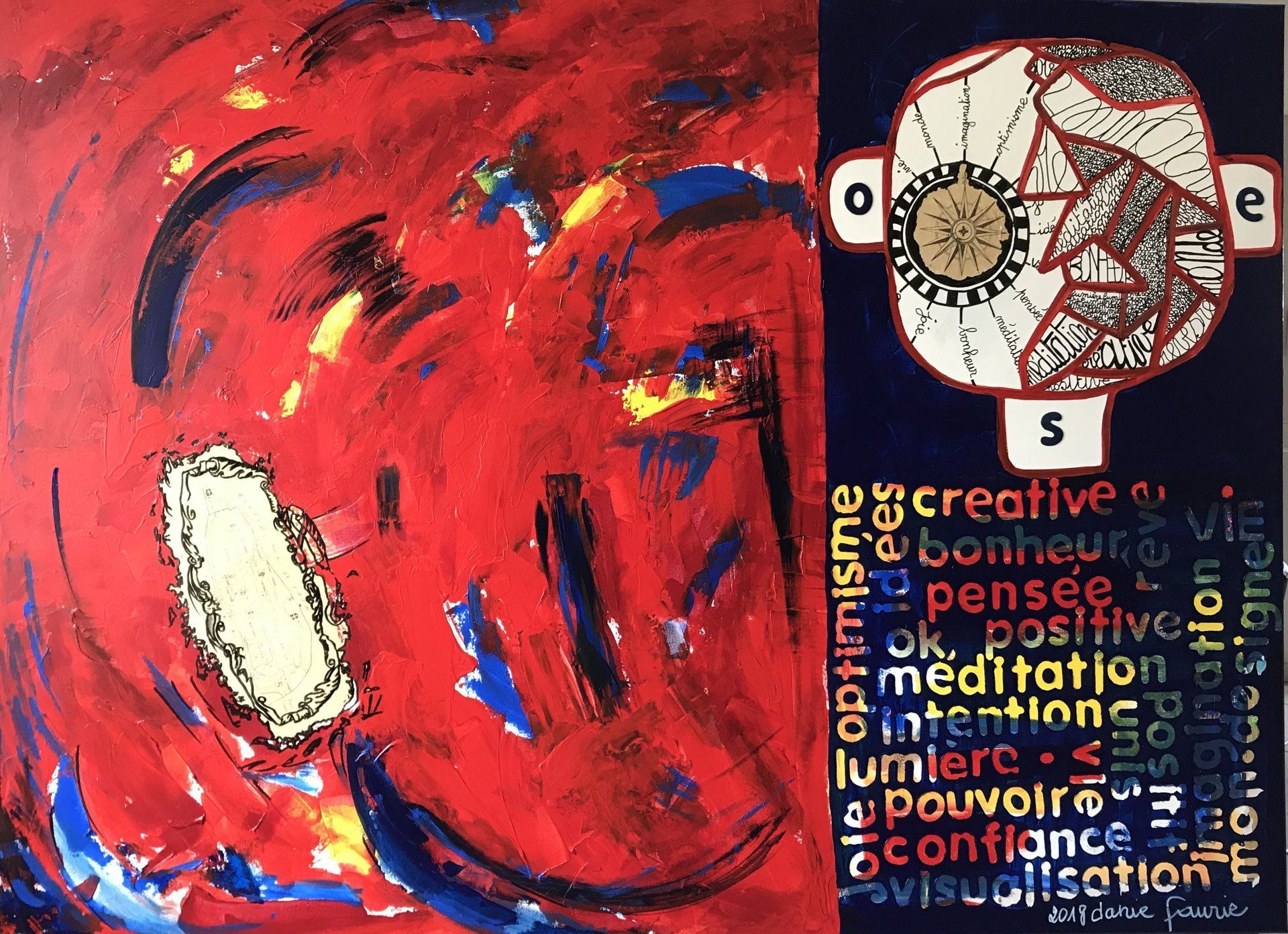 A travers la couleur qui devient signe, l'acte de peindre est mené commme une grammaire, inventant ses vertiges, , créant des espaces de silence, des grandeurs bleues, des profondeurs noires, des violences rouges. Les couleurs aspirent la parole, emportent le regard dans leur univers, invitent à la méditation.